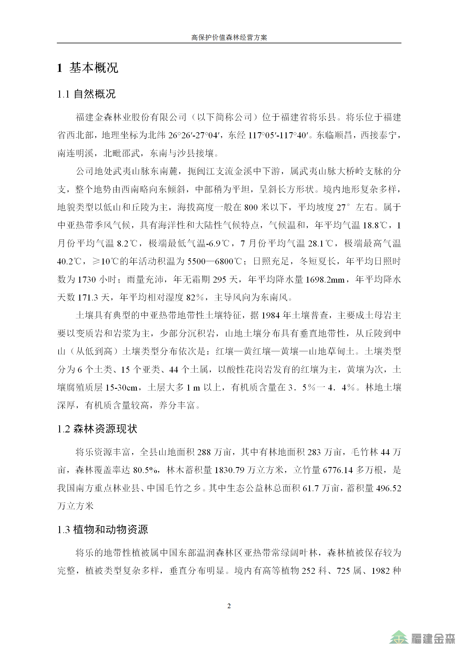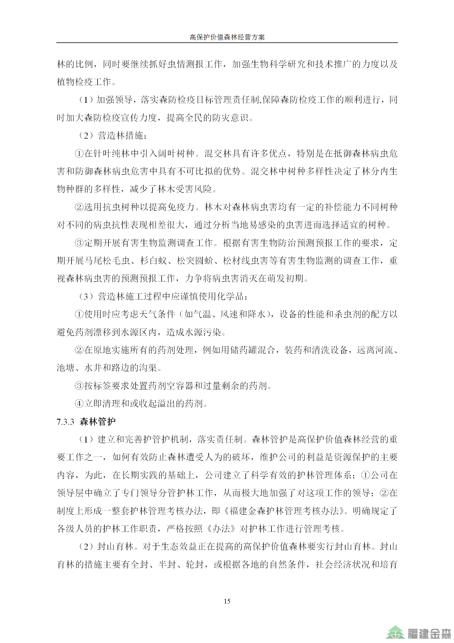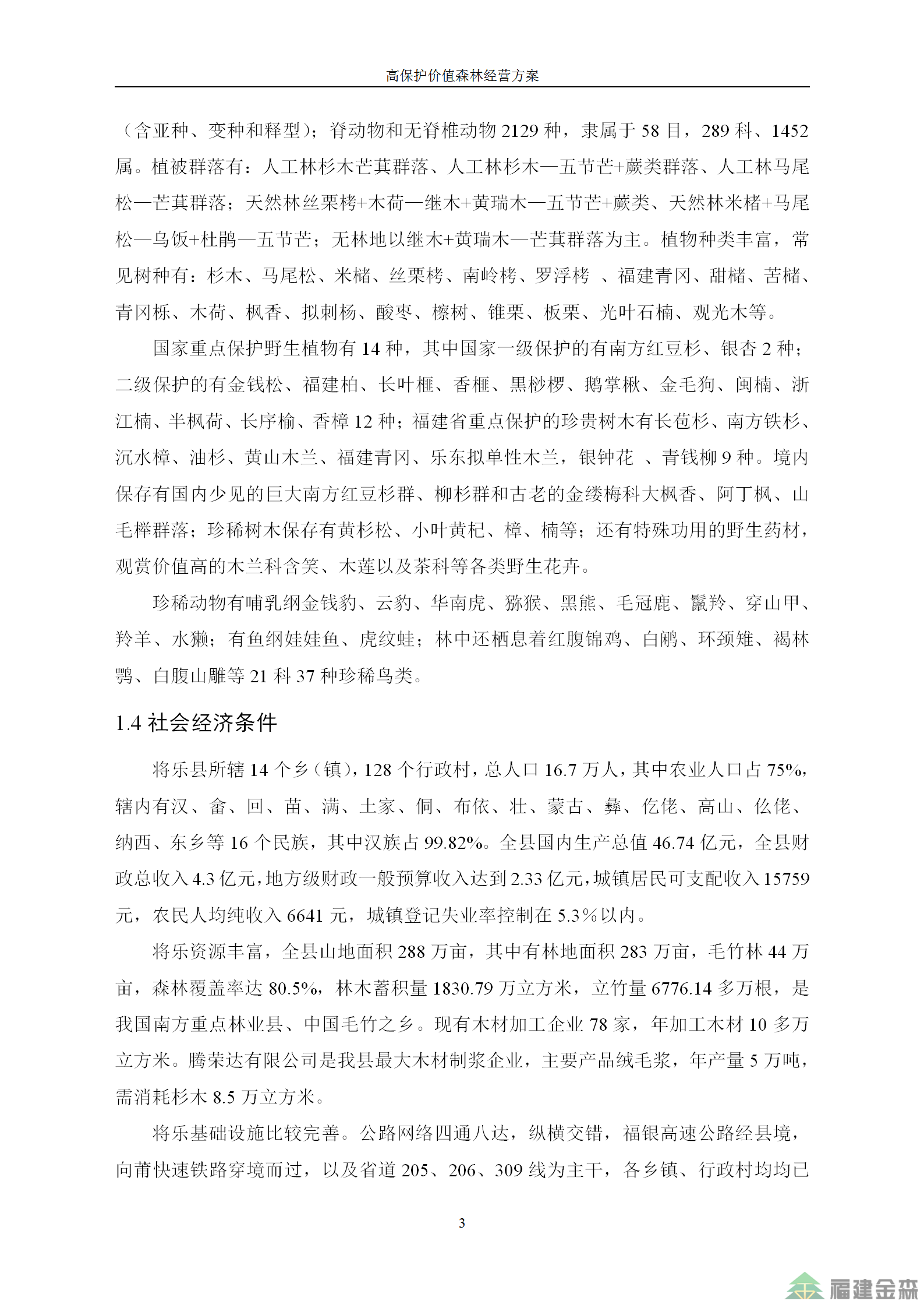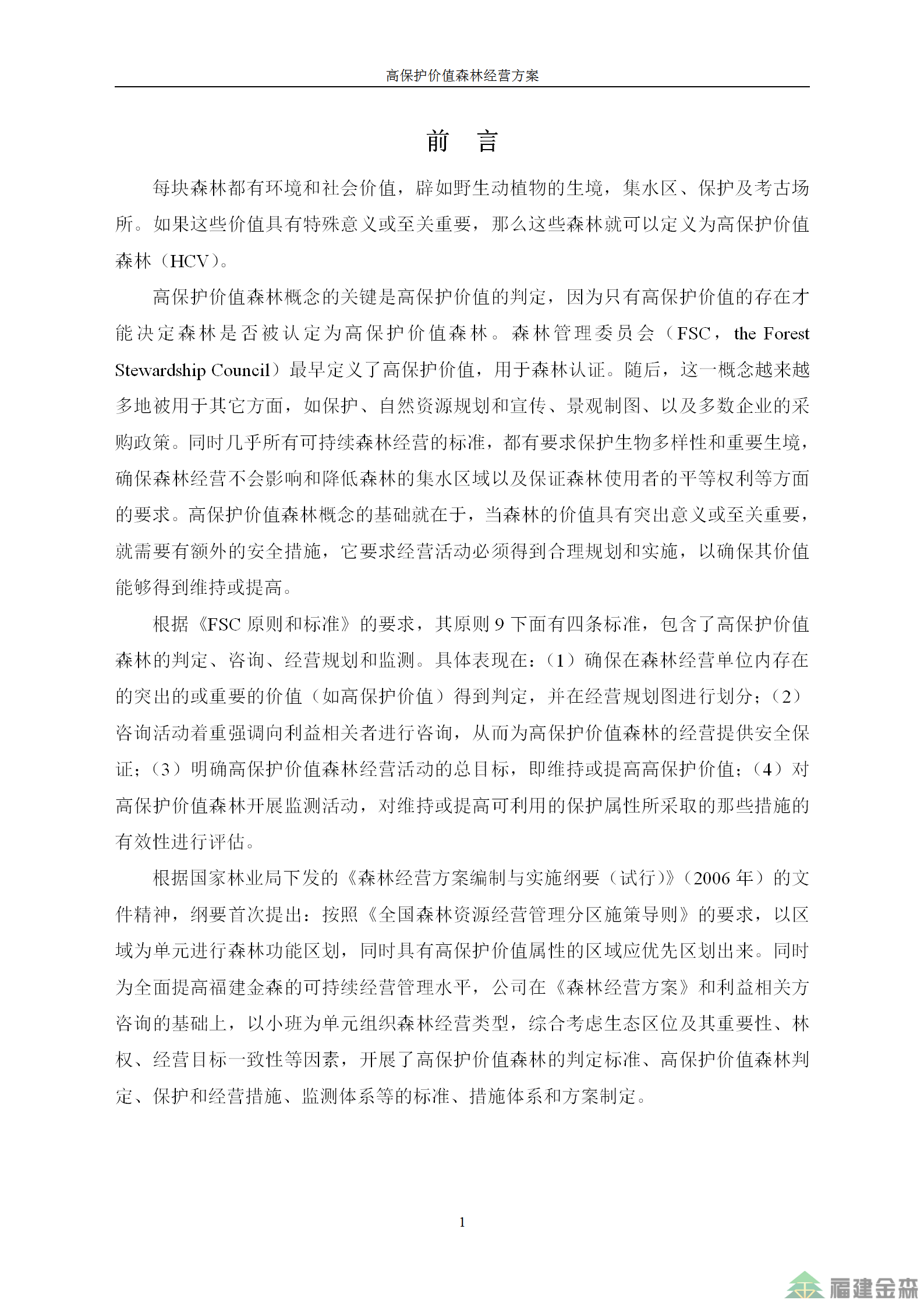 福建金森林業(yè)股份有限公司高保護(hù)價(jià)值森林經(jīng)營方案
